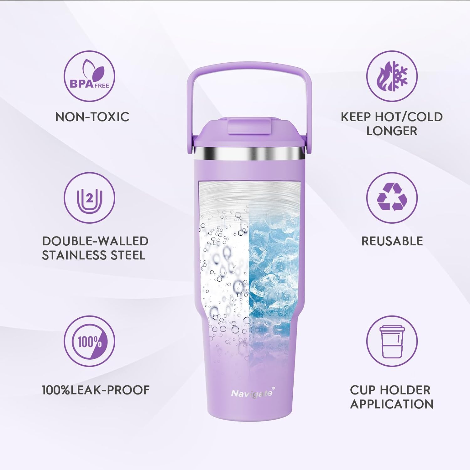 Navigate 30 oz Tumbler with Handle and Straw Lid,Twist On Lid and Flip Up Straw, Double Insulated Tumblers with Flip Straw and Top Handle, Insulated Water Bottle, Purple.