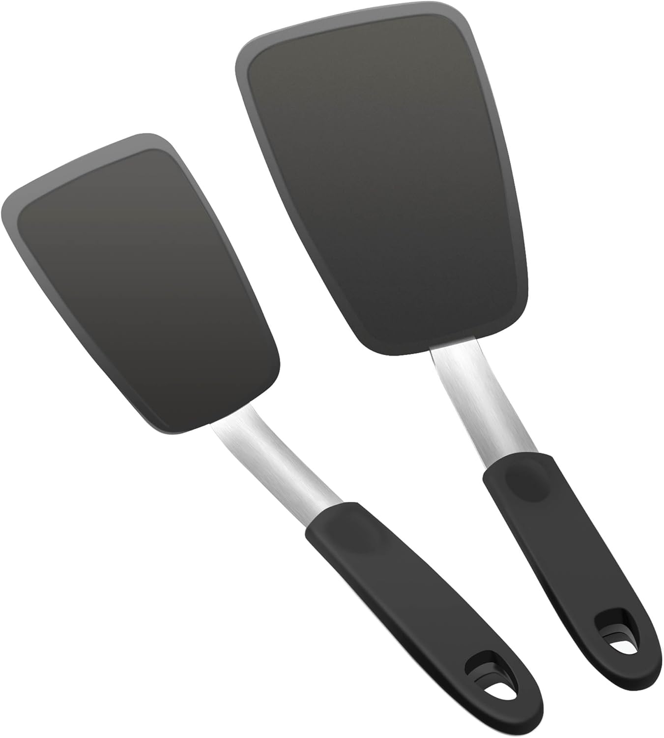 Flexible Turner Rubber Silicone Spatula for Flipping Eggs, Burgers, Crepes and Fish, Non-stick Silicone Spatula and 600F Heat-resistant Kitchen Cooking Utensils,2 Pack.